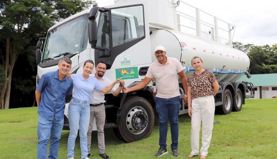 Na oportunidade, a parlamentar também realizou a entrega oficial de 01 caminhão-pipa, que passa a integrar o kit PROMAQ, conjunto de maquinários que também conta com 01 pá carregadeira, reforçando a estrutura do município para serviços de infraestrutura, apoio às comunidades e atendimento às demandas rurais.