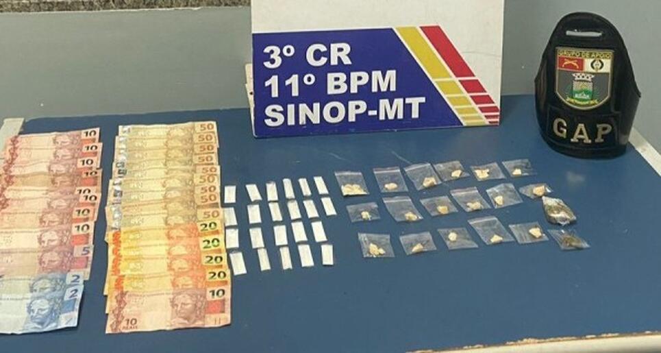Policiais militares do 11º Batalhão prenderam em flagrante um homem de 20 anos por tráfico de drogas, na madrugada deste sábado (20), em Sinop. Com o suspeito, foram apreendidas 41 porções de entorpecentes entre maconha e cocaína.