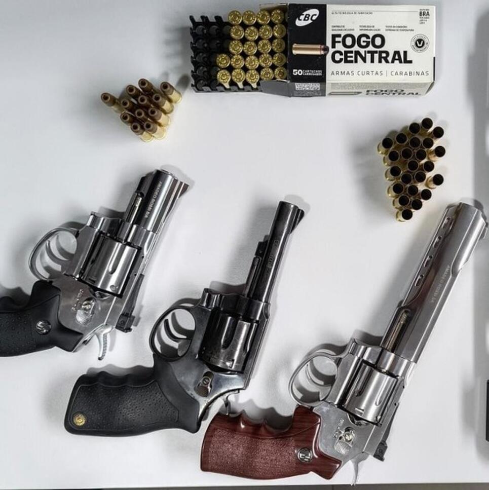 Na residência do investigado, de 45 anos, foram apreendidas uma arma de fogo, do tipo revólver de calibre 38, e 27 munições intactas do mesmo calibre. No local também foram encontradas duas armas airsoft.