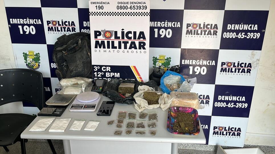 Uma mulher de 22 anos foi presa em flagrante pela Polícia Militar por tráfico ilícito de drogas, na manhã desta sexta-feira (11.10), em Sorriso. Com a suspeita, que afirmou ser integrante de uma facção criminosa, a PM apreendeu tabletes de maconha, porções grandes de cocaína e pasta base, e um drone.