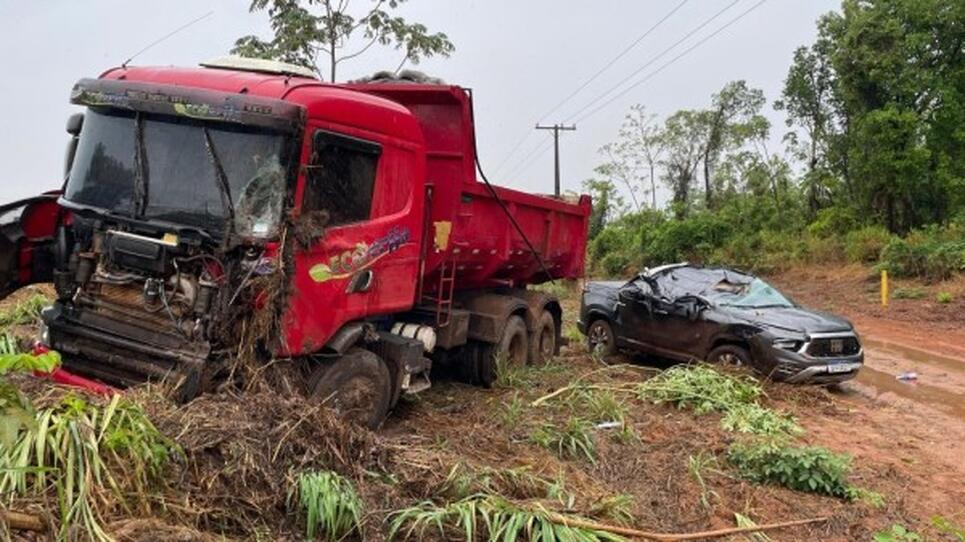 Picape e caminhão se envolvem em colisão na BR-163 em Sorriso