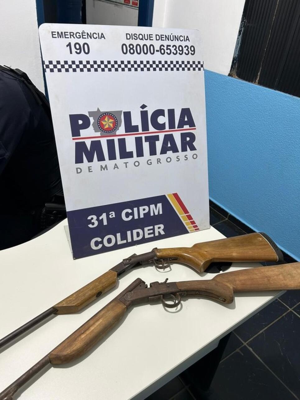 As armas foram apreendidas e encaminhadas à Delegacia de Polícia Civil, juntamente com o registro da ocorrência, para as providências cabíveis.