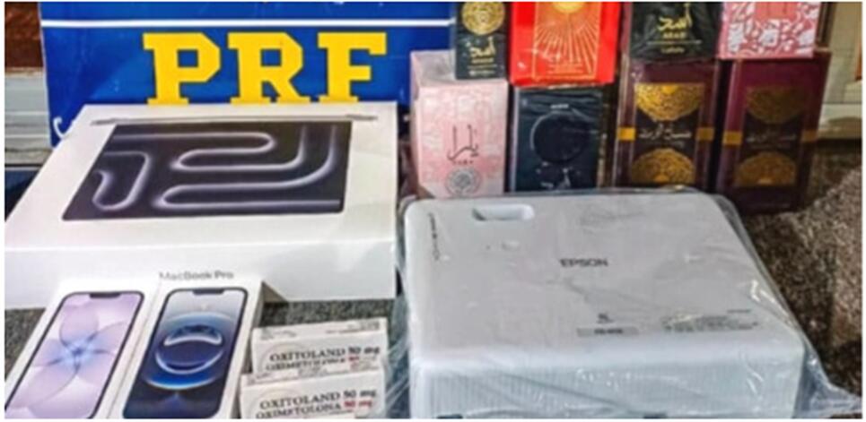 Durante procedimento de abordagem a um veículo de passeio nas proximidades da unidade operacional, equipes realizaram verificação veicular e identificaram irregularidades relacionadas ao transporte de produtos, encontrando medicamentos, além de perfumes, aparelhos eletrônicos e outros produtos de origem estrangeira. Foi constatada a ausência de comprovação regular de importação das mercadorias, bem como a inexistência de autorização para o transporte do medicamento.