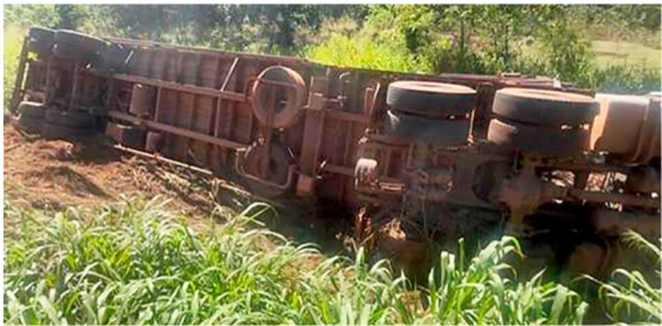 Ele detalhou às equipes operacionais que, ao decorrer do trajeto, um dos pneus dianteiros teria estourado e provocado a saída de pista. Na sequência, o veículo de carga acabou tombando de lado, às margens da via.