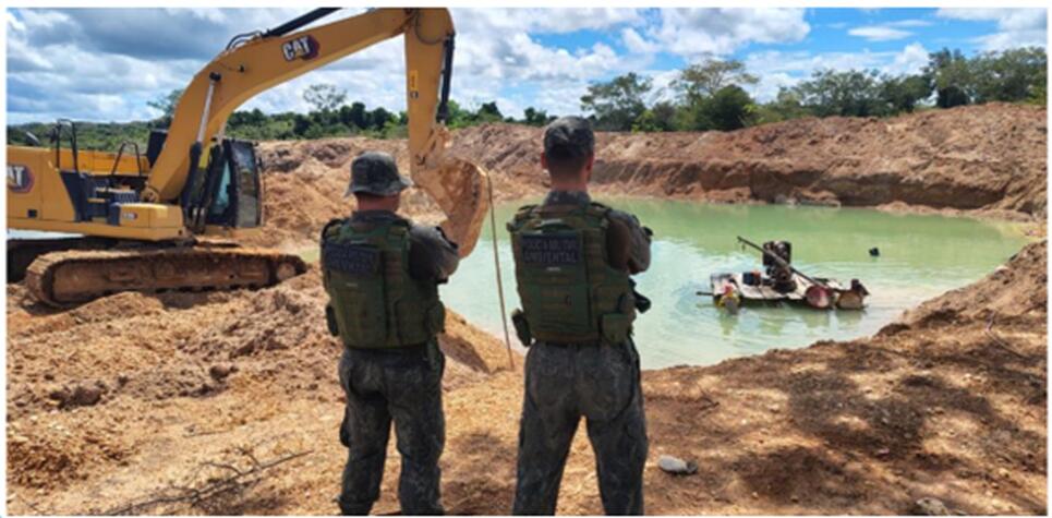 Na região informada, os militares flagraram o garimpo ilegal em pleno funcionamento com máquinas, tratores e três motores estacionários realizando as atividades de extração ilegal de minério. Os policiais também fizeram monitoramento e identificaram os proprietários da área. No local, nenhum suspeito foi localizado.