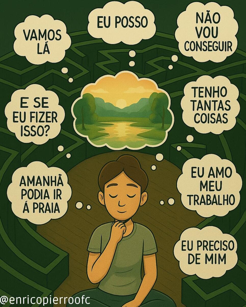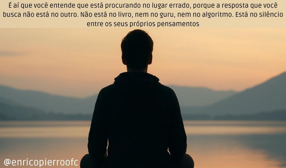 Mas chega uma hora em que nada do que vem de fora preenche. Nenhum conselho encaixa, nenhuma explicação satisfaz. Tudo parece raso, desconectado. Como se as palavras escorressem sem alcançar o que você sente. É aí que você entende que está procurando no lugar errado, porque a resposta que você busca não está no outro. Não está no livro, nem no guru, nem no algoritmo. Está no silêncio entre os seus próprios pensamentos.