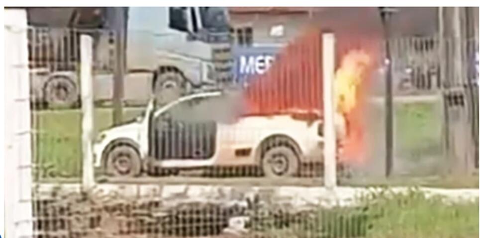 Carro pega fogo em avenida de Lucas do Rio Verde