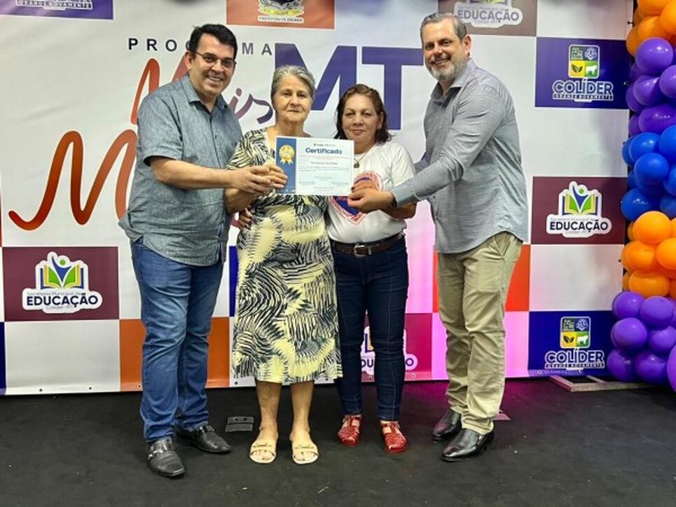 A Prefeitura de Colíder, por meio da Secretaria Municipal de Educação, realizou na noite deste dia 9 de dezembro de 2025 a cerimônia oficial de entrega dos certificados aos alfabetizadores e alfabetizandos do Programa Mais MT Muxirum. O evento ocorreu no Centro de Eventos Renan de Muriez e marcou mais um passo importante na promoção da educação inclusiva no município.