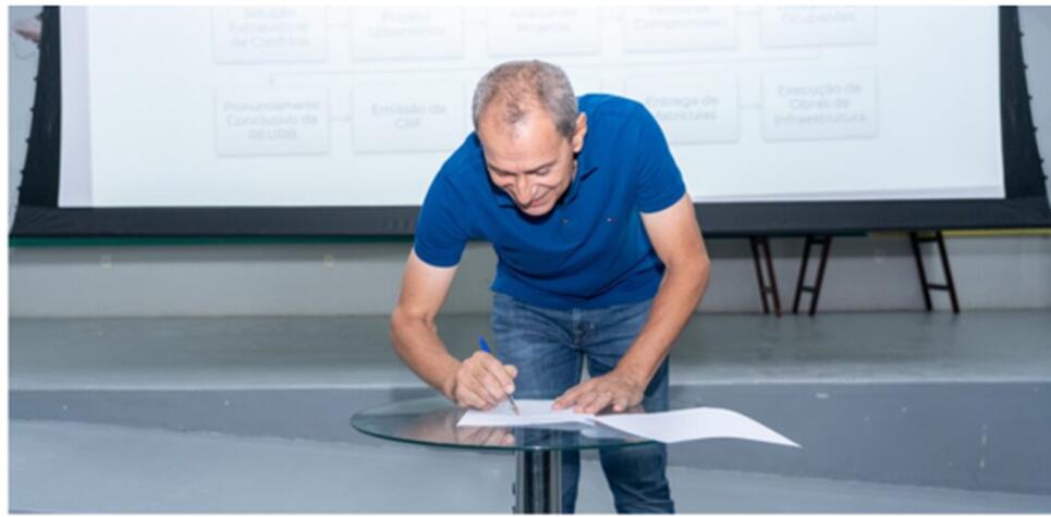 O prefeito Miguel Vaz assinou hoje o decreto que autoriza o início do processo de Regularização Fundiária Urbana (REURB) no Núcleo Urbano Informal Consolidado “30 de Novembro”.