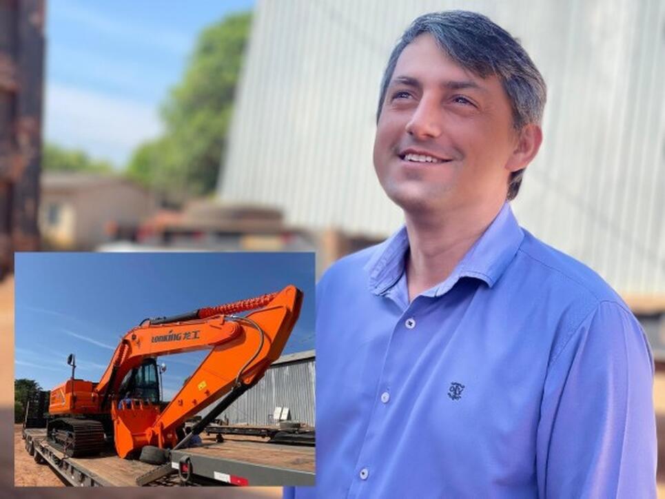 Prefeito Bruno Mena comemora entrega de nova escavadeira para infraestrutura de Matupá