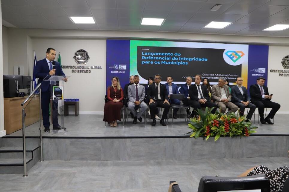 A Rede de Controle da Gestão Pública do Estado de Mato Grosso lançou, nesta quinta-feira (26.2), o Referencial Técnico para Implantação de Programas de Integridade nos municípios mato-grossenses. Na ocasião, as Prefeituras de Santo Antônio de Leverger, Cáceres e Ipiranga do Norte, além das Câmaras Municipais de Cáceres e de Ipiranga do Norte, assinaram o termo de adesão ao documento, formalizando o compromisso de implementar planos de integridade alinhados às diretrizes estabelecidas.