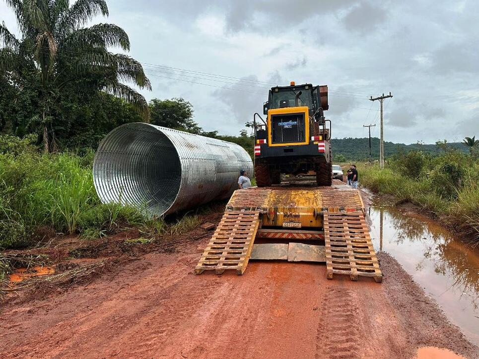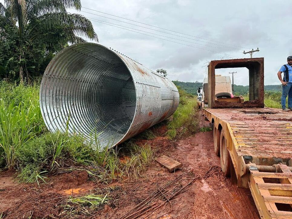 Nesta etapa, estão sendo instalados seis tubos de aço corrugado em substituição a pontilhões e pontes de madeira em pontos considerados estratégicos. O Governo do Estado já firmou compromisso de disponibilizar novas unidades do material, ampliando ainda mais os investimentos em infraestrutura e mobilidade rural.