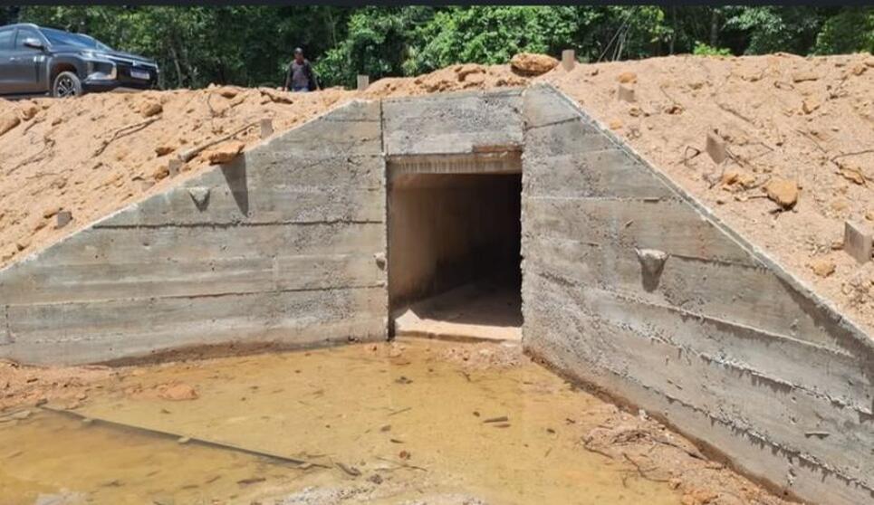 A nova estrutura possui 9 metros lineares e abertura de 1,5 metro para vazão de água, garantindo maior segurança, durabilidade e eficiência no escoamento das águas pluviais.